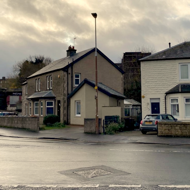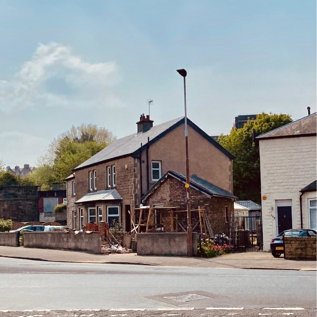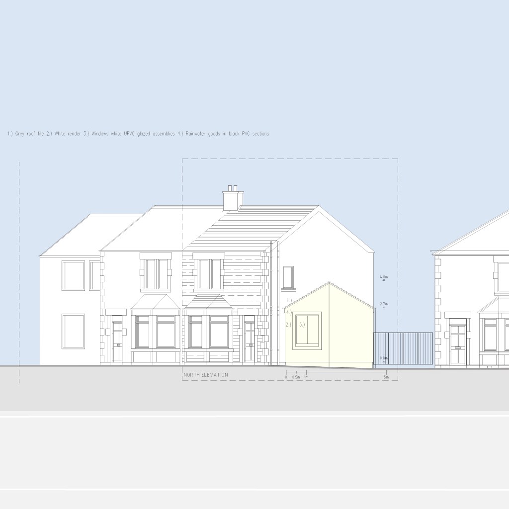A young family in Edinburgh needed more space in their semi-detached home. The solution was a single-storey side extension that provided an extra room and a ground-floor shower. The triangular plot and planning regulations shaped the design into a modern, symmetrical form that integrates naturally with the existing house.